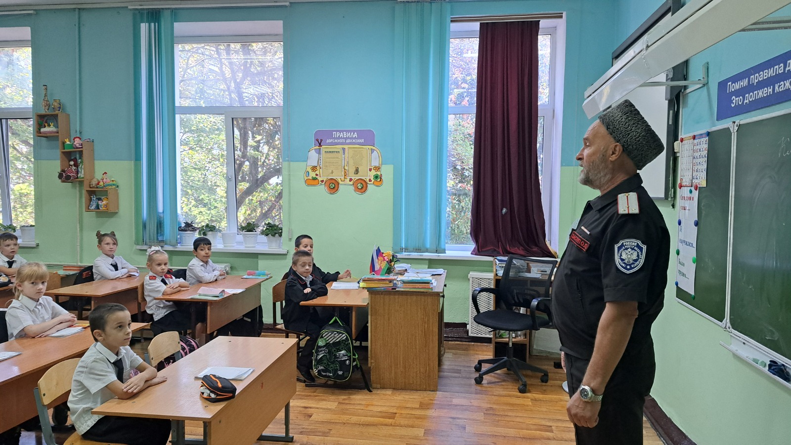 В гости к первоклассникам казачьей школы №3 города Туапсе пришел исполняющий обязанности атамана Туапсинского городского казачьего общества Олег Заступ.