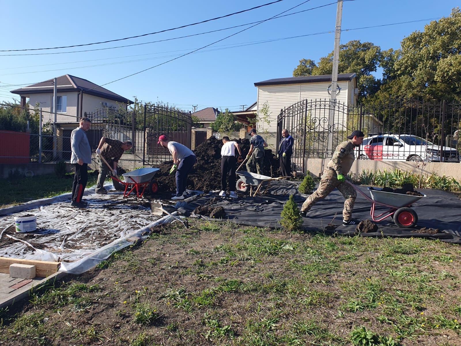Для озеленения территории храма к нему было завезено около 30 кубометров чернозема. Настоятель храма, духовник казаков Новороссийска протоиерей Василий Симора призвал казаков помочь раскидать землю по намеченным клумбам, где уже высажены вечнозеленые растения.