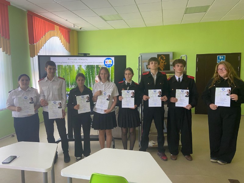 В Новороссийской казачьей школе №24 им. генерала Н.Н. Раевского прошел конкурс чтецов, посвященный 130- летнему юбилею великого русского поэта Сергея Александровича Есенина.
