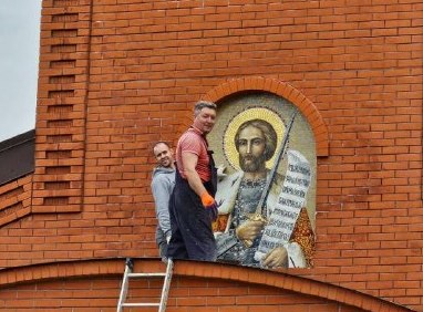Во главе с атаманом ХКО «Невский» Александром Лисицыным по просьбе настоятеля храма, духовника казачества Новороссийска протоиерея Василия Симоры казаки Игорь Ященко и Михаил Севостьянов приняли участие в установке мозаичной иконы покровителя кубанского казачества.