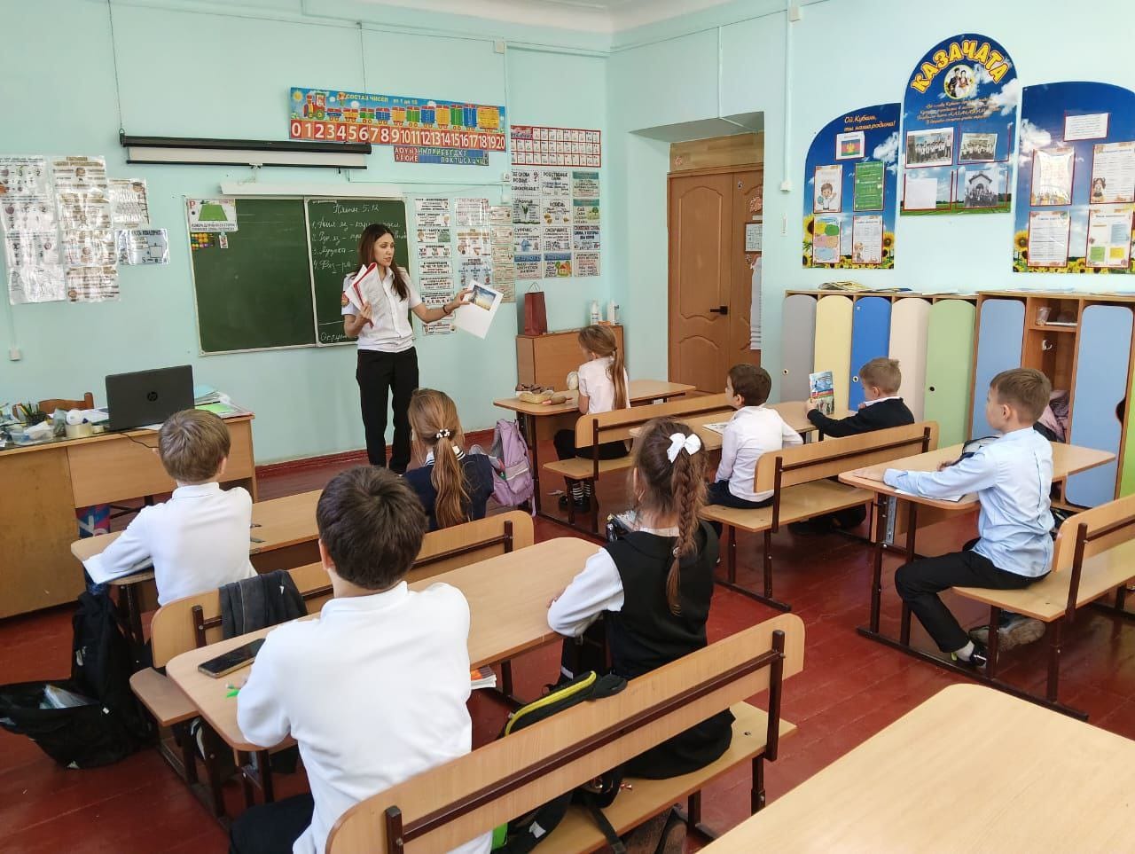 В преддверии Дня матери-казачки наставник казачьих классов Береговского хуторского общества Геленджикского РКО Дарья Лесникова посетила казачат 3-го класс школы №19 им. Ксении Ярцевой села Михайловский перевал.