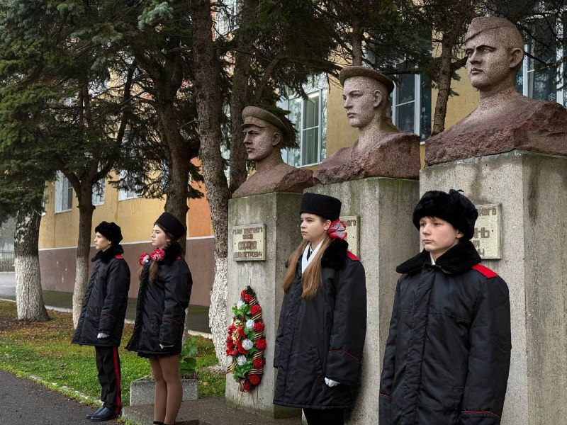 Учащиеся проявили уважение и почтение к героям, выставив почетные караулы у памятников станицы Раевской. Они приняли участие в памятных церемониях у памятника Трем Героям, на мемориальном комплексе и у братской могилы на улице Славы.