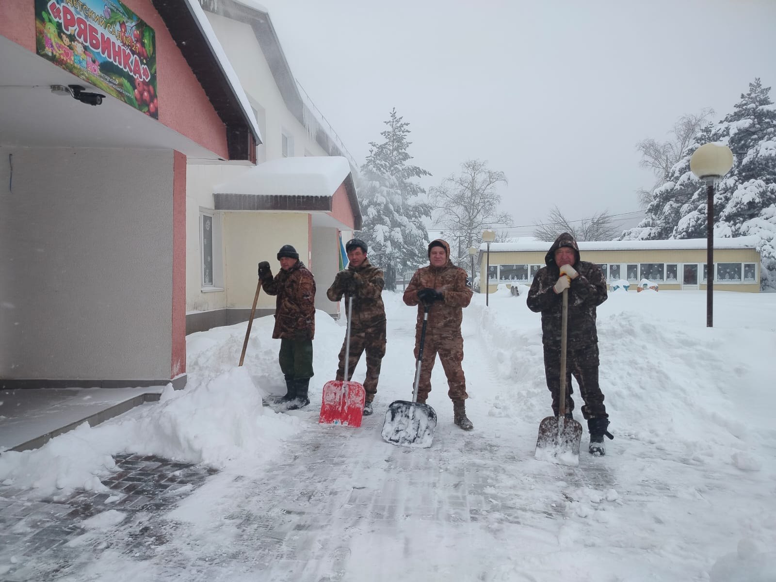 Работа шла поэтапно: небольшие бригады вычищали проходы от входа и детских площадок, освобождали от снега парковочные места и подъездные пути для грузовых автомобилей. Использовали лопаты, снегоуборочные скребки и ободряющий настрой — всё, чтобы ребята и воспитатели могли попасть в детский сад, а машины с провизией могли подъехать максимально близко.