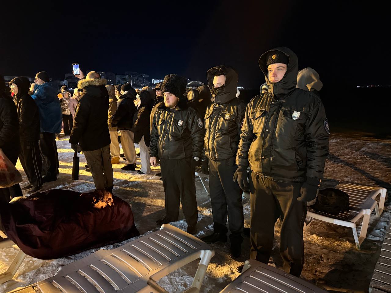 С самого вечера, с 20:00 часов, казачьи наряды заступили на дежурство на всех организованных местах проведения народных обычай. Их задача была комплексной: обеспечение общественного порядка, помощь людям, особенно пожилым, в безопасном спуске к воде и выходе из водоёмов, а также контроль за недопущением нарушений и распития спиртных напитков. Их бдительное присутствие, выправка и готовность прийти на помощь создали атмосферу уверенности и спокойствия для всех участников мероприятия.