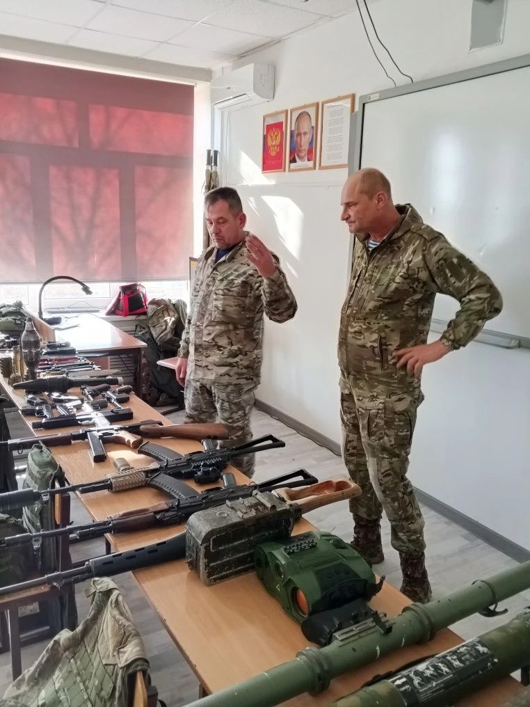 Атаман Приморского хуторского казачьего общества Новороссийского РКО Павел Ларичев и его заместитель Петр Траханов провели выставку оружия «Казачья удаль» для учеников Семигорской казачьей школы №25 им. Захария Чепеги.