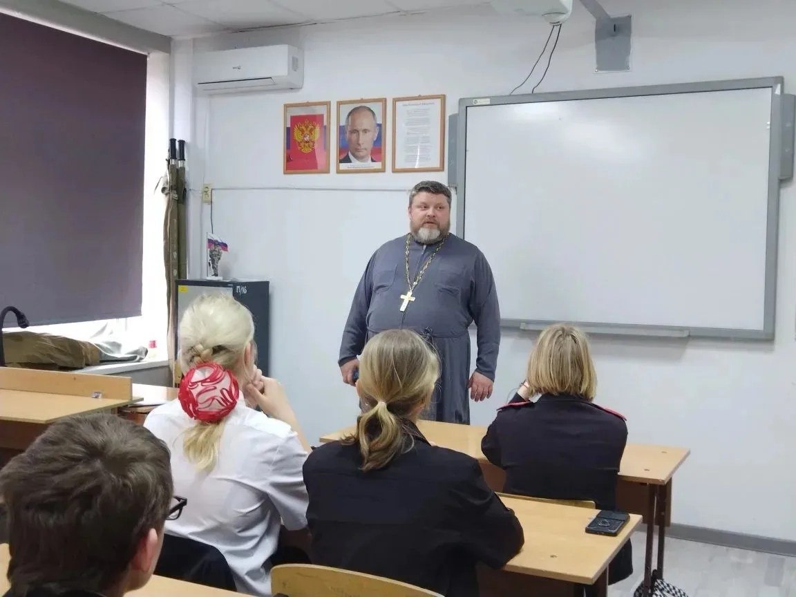 В 4-м «Б» классе Новороссийской казачьей школы №25 состоялась особая, очень душевная встреча: в гости пришел отец Валентин, чтобы поговорить с ребятами о самом главном — о добре, совести и выборе, который мы делаем каждый день.
