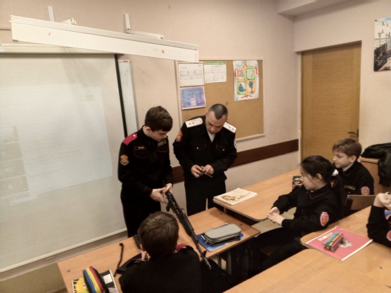 Казаки-наставники 10-й казачьей школы города Сочи Максим Горянский и Алексей Шевченко начали проводить со своими воспитанниками циклы военно-прикладных занятий. В первую очередь изучают с ребятами устройство автоматического стрелкового оружия, стоящего на вооружении Российской армии. Такие уроки военного дела проводятся в школе сверх учебной программы, но всегда вызывают огромный интерес у казачат.