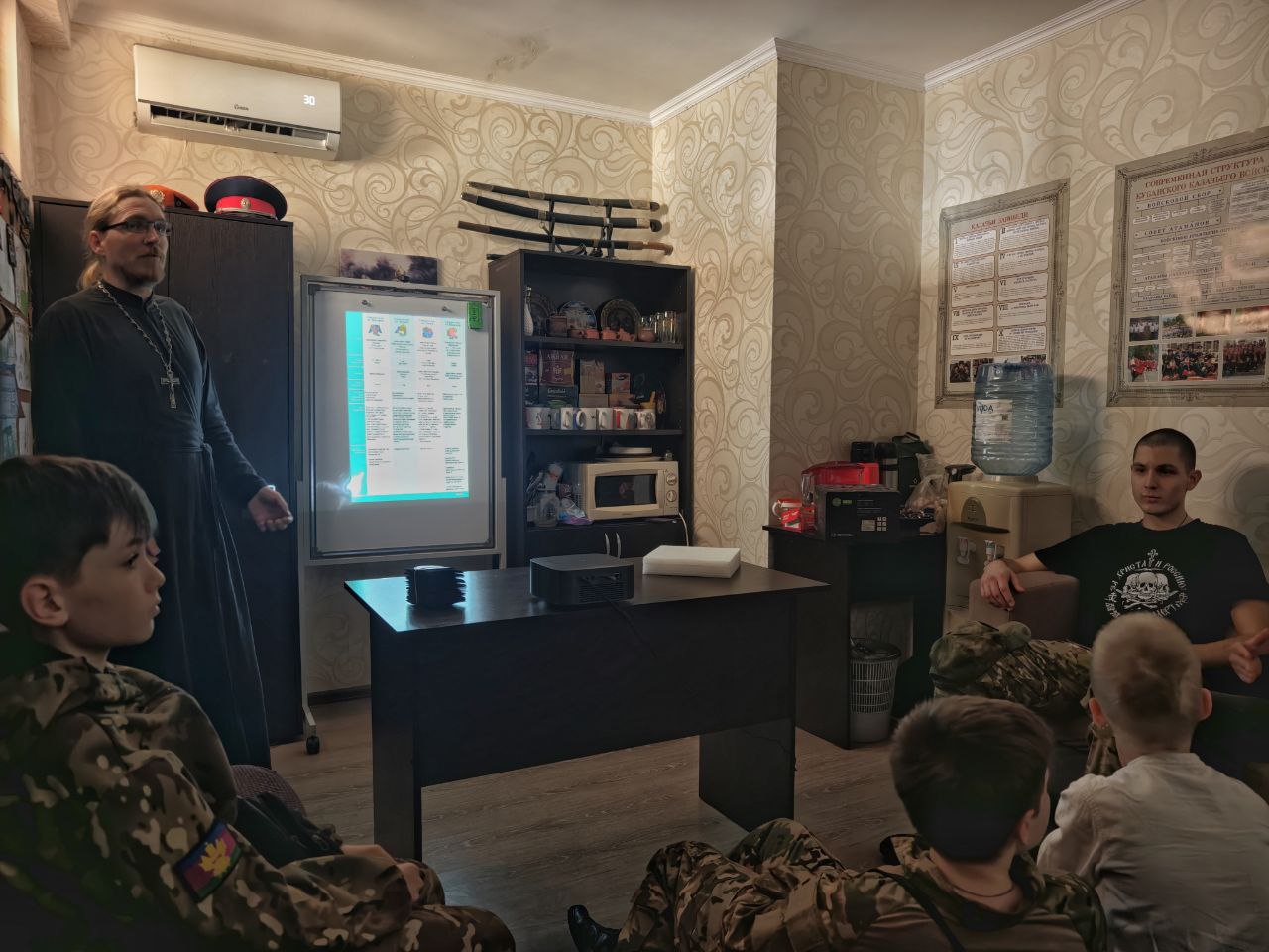 В Сочи накануне Дня православной молодежи воспитанники казачьего военно-патриотического клуба «Святогорец» встретились со своим духовным наставником — настоятелем храма 40 мучеников Севастийских Сочинской епархии, иереем Димитрием Ходариным. Беседа посвящалась истории Священного Писания, традициям Русской православной церкви, практике христианской веры в нашей стране.
