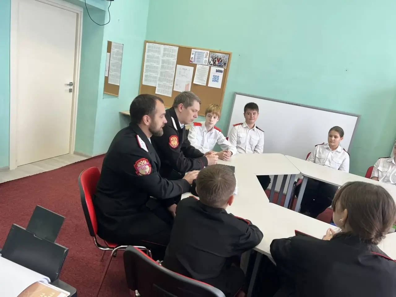 В стенах ООШ № 10 им. Атамана Головатого состоялась важная рабочая встреча, объединившая атамана Кабардинского хуторского казачьего общества Бориса Старчак, председателя Союза казачьей молодёжи Кубани Петра Щетинина и юных атаманов казачьих классов.