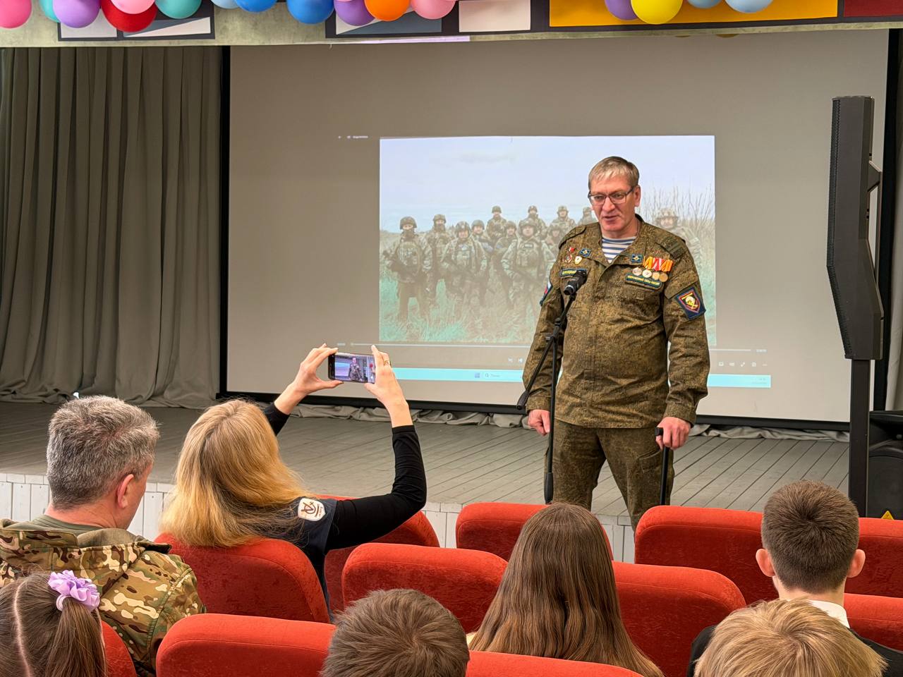 В завершение встречи Александр Николаенко исполнил еще одну авторскую патриотическую песню. Куратор казачьих классов Анна Горибян сердечно поблагодарила казаков за такое важное праздничное событие.