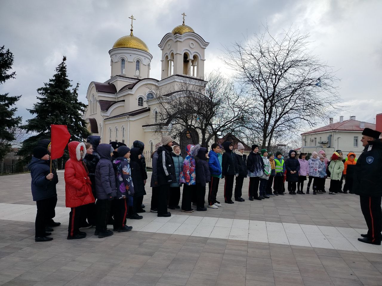 Храм расположен в самом центре села, рядом с братской могилой воинов-малоземельцев. Казачата почтили память защитников города-героя минутой молчания.