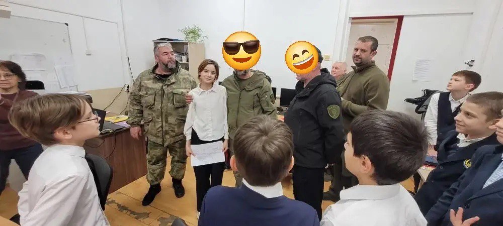 Необычная встреча произошла в 11-й школе города Сочи. В гости к ученикам 5-го класса «а» пришли бойцы казачьего добровольческого отряда БАРС-11, сражающиеся под позывными «Лесник», «Перс», «Сармат». Они разыскивали ученицу Арину Отрошенко, привезли ей с фронта теплое послание от своих товарищей и скромные подарки.